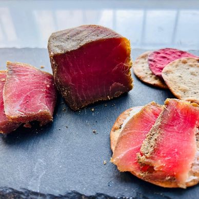 Notre thon rouge aux 5 baies (poivre) fumé au bois de pommier.